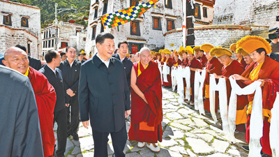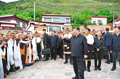 7月21日至23日,习近平在西藏自治区党委书记吴英杰、自治区政府主席齐扎拉陪同下,先后来到林芝、拉萨等地,深入农村、城市公园、铁路枢纽、宗教场所、文化街区等看望慰问各族干部群众。