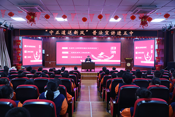 9月23日,松原市中级人民法院党组成员、副院长邵浩鹏,党组成员、政治部主任孙丽艳一行带队到前郭县第五中学开展普法宣传活动。
